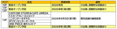 JR西日本SC開発は、キャラクターズワールド内に秋開業予定の6店舗を発表。公開された新店は「ナルミヤハッピーパーク」「サンリオ」「スクウェア・エニックス オフィシャルグッズショップ」「エブリシングマインクラフト」「しろたんふんわりストア」「にしむらゆうじ購買部 本店梅田」。