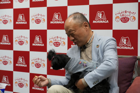 会場では、森永製菓代表取締役会長CEOの太田英二郎氏も愛犬「のの」ちゃんとともに登壇し、「人とペットの家族が同時に驚き、笑顔になれる世界をつくりたい」「これは単なる新商品の発売ではなく、関係性をより幸せなものへ進化させる提案」と述べ、その意義を強調した。