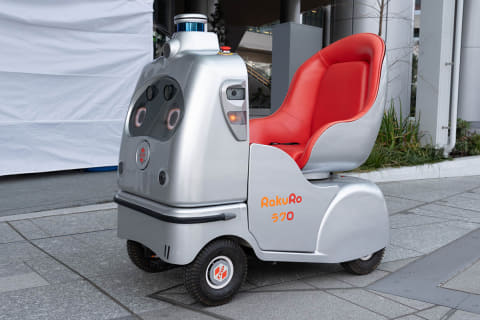 「Rakuro」(ROBO-HI)は、1人乗りの自動運転モビリティ。同種のタイプでは公道走行可能な唯一のモデルだそう。行き先を入力すると操作不要で運んでくれます。