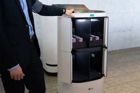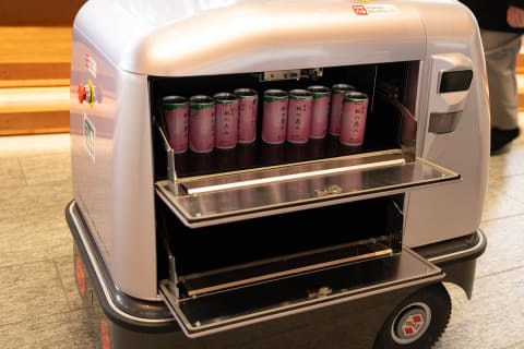 Rakuroの姉妹車となる「DeliRo」は、配達用のロボット。街の中で注文した人にフードを届けるサービスを実施しています。注文者のスマホに表示されたQRコードを読み取ると扉が開く仕組みです。