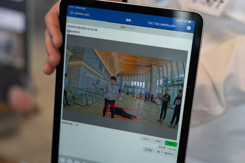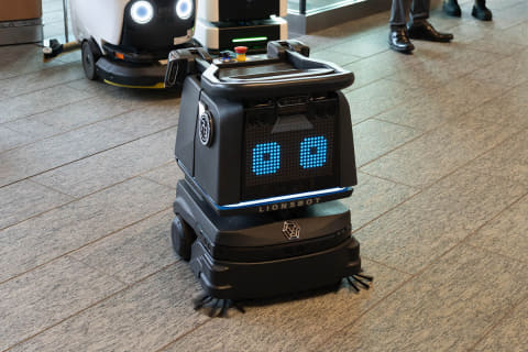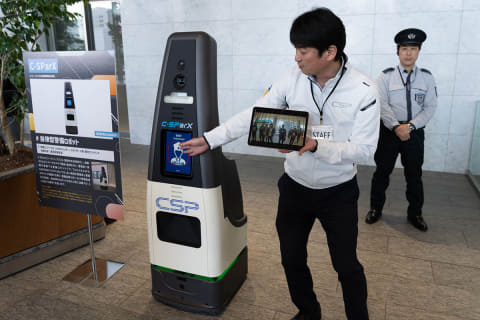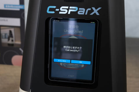 「C-SParX」(セントラル警備保障)は自律型の警備ロボット。AIでカメラの映像を認識し、自動で警備員に情報を伝えます。すでにビル内で使用されています。