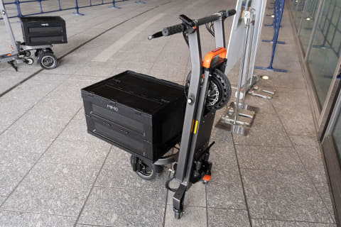 「MIMO C3 cargo e-scooter」(MIMO Moter)は電動のスクーター。前の部分に50kgまでの荷物を積めるのが特徴。日本では未発売ですが、欧州ではペットを乗せて使うユーザーもいるそうです。