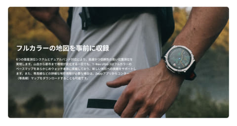 64GBの大容量ストレージを搭載。オフラインベースマップを搭載し、使用したい地域の圧縮地図データを解凍することで世界中どこにいても地図機能が使用可能。さらに等高線図、スキー場マップなど複数のオフラインマップもダウンロードできる。YAMAP・ヤマレコのGPXデータも活用可能。