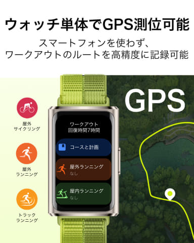 HUAWEI Band 11 ProではGNSSによる測位機能を搭載し、100種類以上のワークアウトを簡単にモニタリングでき、屋外運動時のルート記録・表示にも対応する。