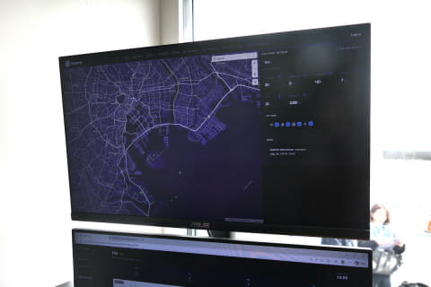 隣にはオペレーションルームが併設されている。Vertiport Automation Systemは離着陸場の空き状況管理や周辺空域の監視などの運航支援、地上設備を始めとしたリソースのデジタル管理、チェックインや顧客管理をシームレスに行なう顧客体験に必要な機材を配置することで、空飛ぶクルマの安全・安心な高頻度運航の実現を支援するシステム。