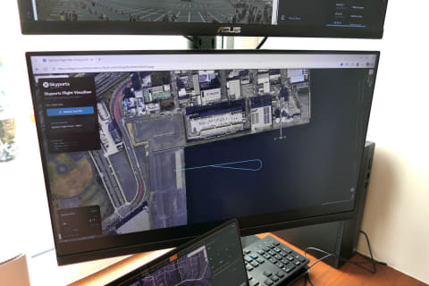 飛行機体だけではなく、今回は顔認証チェックイン等の最新技術を組み込んだターミナル機能や、自動制御・リモート操縦を想定した無人飛行を行ない、その運航情報を空域監視システムに取り込んで飛行経路を可視化するシステムが紹介された。