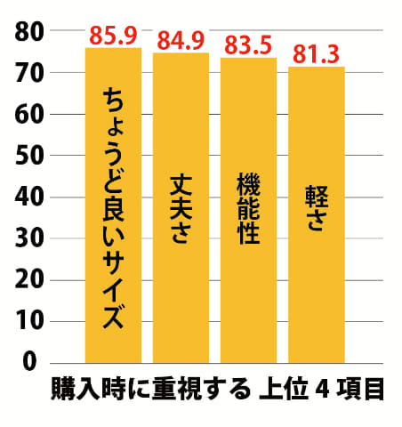 エースが実施した「ビジネスバッグ調査」では、購入時に重視する上位4項目は「ちょうど良いサイズ」「丈夫さ」「機能性」「軽さ」だった。シルパックはこのうち「軽さ」に着目し、「ちょうど良いサイズ」と「機能性」にも配慮して設計した。