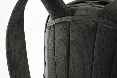 背面とハーネス裏面には蒸れ防止を図り、エアメッシュを採用。メッシュ表面を滑らかでざらつきの少ない仕上げとすることで、擦れて衣類が摩耗しにくいようにもしている。