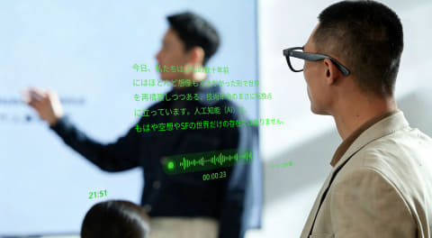 翻訳機能では、89言語以上に対応するリアルタイム翻訳を利用できる。会話相手を見るだけで視界内に字幕のように翻訳結果を表示するほか、看板やメニュー、駅の案内表示といった文字情報も視界内で翻訳できる。