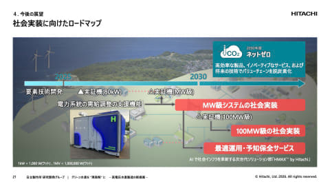日立では水電解スタックそのものの開発は行なっておらずパートナーから提供を受けているが、今後は電力系統運用のドメインナレッジ、プラント全体の最適運用技術や予知保全サービスなどデジタル技術も含めてワンストップビジネスを提供していく。