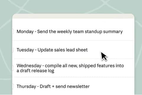 - 週次レポート:Google ドライブ、スプレッドシート、連携ツールからデータを収集し、フォーマットされた要約を作成