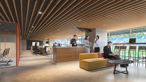 また、年間を通して利用できるスタジアムを中心に、サッカーの試合だけでなく日常的な賑わいを生み出す集客機能やシェアオフィスなどの産業育成機能を整備。行政や関係官庁等と連携しながら、地域の防災拠点としての役割や環境に配慮した社会インフラを導入し、人口減少が進むなかでの地域活性化、若者の就労機会増加など、山形県が抱える課題の解決を目指す。