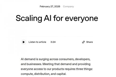 OpenAIは27日(米国時間)、7,300億ドルのプレマネー評価額で、1,100億ドル(約17.1兆円)の新規調達を発表した。内訳はソフトバンクから300億ドル、NVIDIAから300億ドル、Amazonから500億ドルの投資を受ける。さらにAmazonとは戦略的提携を締結し、NVIDIAとは次世代推論コンピューティングを確保するなど、資金だけでない提携強化を図っていく。