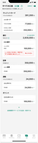 新たに「マネーフォワード ME」と連携した金融関連サービスの資産情報を口座一覧画面に表示できるようにするほか、クレジットカードの支払い金額に対し、引落口座の残高が不足している場合のアラート機能を追加する。