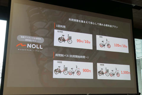 ドコモ・バイクシェアは、サービスを全面的に刷新し、5月1日からサービスブランドを「NOLL(ノル)」へ変更する。新型の車両を導入するほか、料金プランも変更。新料金は、従来車両が99円/10分、新型車両が120円/10分。