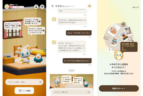 SyncMeは、利用者の価値観や感性に関する傾向を理解し、「あなたに寄り添うパートナー」として雑談や相談などの日常的なコミュニケーションを提供するパーソナルAI エージェント。キャラクター「ワラピィ」との対話でコミュニケーション可能で、先行公開時点では、ユーザー情報を活用したパーソナライズ、「#今のワタシ診断」によるプロファイリングなどの機能を搭載する。