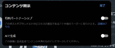Xは、3月に広告表示を明示する「有料パートナーシップ」ラベルを開始。あわせて、AIで生成されたことを示す、「AIで生成」ラベルも開始している。今回の施策ではこの機能を用いる。