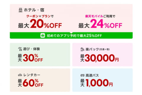 また、初めて「楽天トラベル」アプリから予約するユーザーは、国内宿泊を最大25%オフで予約できます。