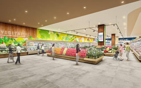 1階の食品売場では、総菜やベーカリー、店内で仕上げるスイーツを展開する。ベーカリー売場には44席のイートインスペースを設け、開店の8時からセットメニューを提供する。市川市産の野菜「いちベジ」のほか、豊洲市場など各地から仕入れた鮮魚を対面販売し、ケーキや菓子も取り揃える。