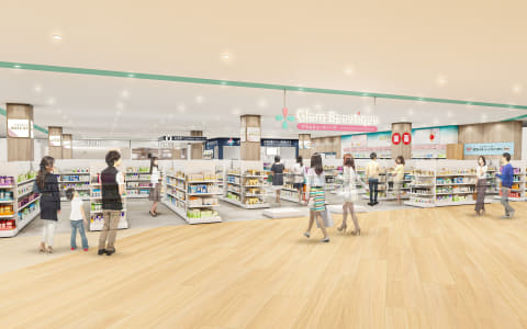 2階にはビューティ売場や生活雑貨売場、調剤薬局「イオン薬局」を設置。イオン薬局ではセルフ式処方せん受付「AI受付機」を導入し、人を介さずに、処方せんの受付、マイナンバーカードの確認、問診の回答を患者自身で行なえる。