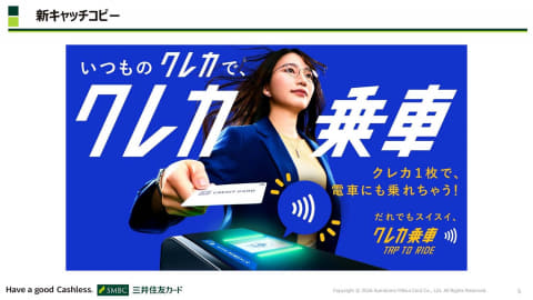 また、普及に向けて「タッチ決済乗車」として、アピールしてきたが、国内でもカードのタッチ決済が60%を超えるなど「当たり前」になってきたことから、「クレカ乗車」という名称に改めて、プロモーションを図っていく。「地方の生活インフラから全国共通の社会インフラを目指す」(三井住友カード大西 幸彦CEO)とした。