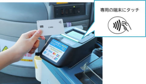 実証実験では、クレジットカードなどのタッチ決済対応カードを車内端末にタッチすることで、乗車時に敬老割引が自動で適用される。利用には「Q-move本人確認サービス」での登録と、専用アプリからのマイナンバーカード連携が必要。