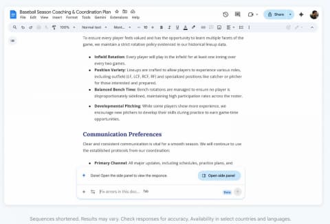 Google ドキュメントにおいては、文脈情報と新たな編集機能を活用することで、Geminiが好みのスタイルでパーソナライズされた文書を作成する。
