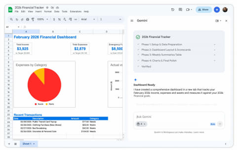 例えば、「シカゴへの引っ越しを整理して。部屋ごとの梱包チェックリスト、公共料金の連絡先リスト、メールボックスから引っ越し業者の見積もりを追跡するスプレッドシートを作成して」と指示すると、関連する情報をメールやファイルから抽出し、プロジェクト全体を設定。ベースとなるスプレッドシートの確認や、テーブルやダッシュボードの追加などの作業を支援する。