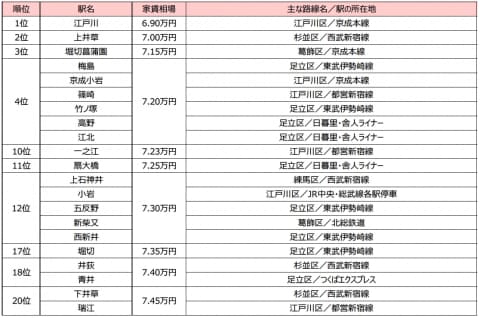 東京23区で家賃が最も安い駅は江戸川区に SUUMO調査