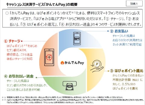 かんでんPayでは、電気・ガス料金の支払いなどで貯めた「はぴeポイント」や現金などをチャージして、街中のお店での支払いに利用できる。対象となる店舗は、全国のQUICPay+加盟店やVisaのタッチ決済対応店舗で利用できるほか、オンラインショッピングなどのインターネット決済にも対応する。決済金額の0.5%分は、はぴeポイントとして還元される(リリースキャンペーンとして、8月31日までは1%を還元)。