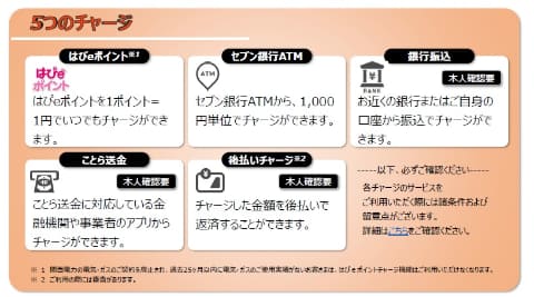 現金チャージは、セブン銀行ATMで1,000円単位で行なえるほか、口座残高チャージ、ことら送金などに対応。チャージした残高は、支払い以外に送金にも利用可能で、セブン銀行ATMでの引き出しや、ことら送金に対応する。