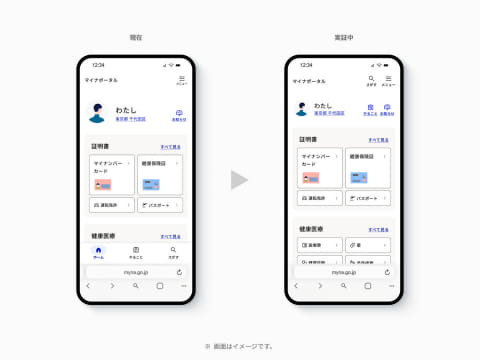 デジタル庁は、「マイナポータル」のホーム画面の改善に向けた実証を3月18日から30日まで実施する。画面下部のタブをなくし、「やること」と「さがす」をホーム画面上部に配置するなどの変更を一部のユーザー向けに展開する。