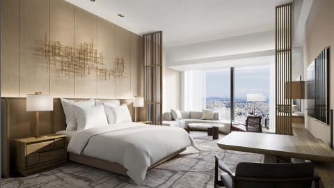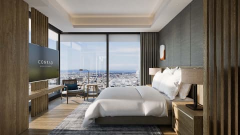 ホテルは、米ヒルトンのラグジュアリーブランド「コンラッド・ホテルズ&リゾーツ」が東海エリア初進出し、「コンラッド名古屋」として開業。客室は計170室で、スイートルームは29室。スパや屋内プール、ジム、ルーフトップバーやレストラン、エグゼクティブラウンジを設ける。