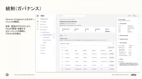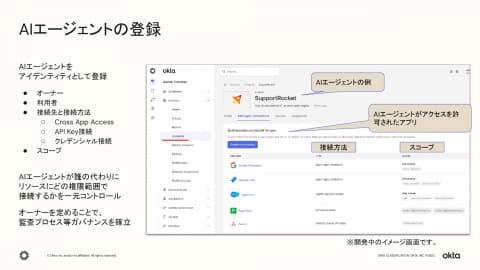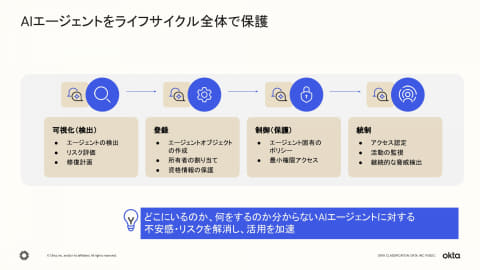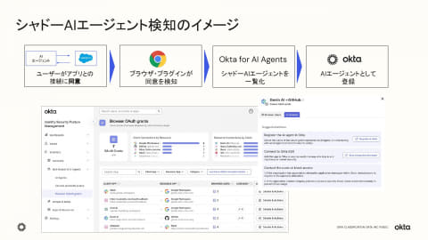 こうした背景を受け、OktaはAIエージェントが「どこに存在するか」「何に接続できるか」「何ができるか」という3つの問いに対応する新しいフレームワーク「blueprint」を提唱。このフレームワークを実装・支援するためにOkta for AI Agentsを提供する。