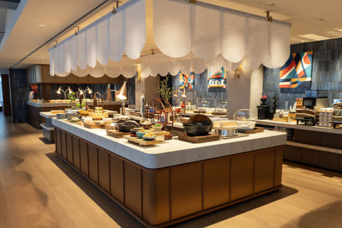 OMO7横浜では、「OMOダイニング」「OMOベーカリー」を展開。OMOダイニングでは、朝食ビュッフェ「Yokohama Morning Specialties」を提供。夜は、横浜らしいナポリタン、ドリアや、オマール海老の麻婆ポットパイ、スパイシーなラムを包んだ赤の餃子など中華メニューをラインアップしています。