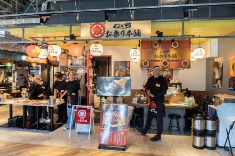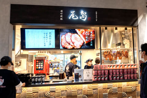 横浜・野毛で100年以上精肉店を営む「尾島商店」の直営店。看板商品は国産豚を秘伝のタレに漬け込み、大きな釜に吊るし、炭火で6時間以上じっくり焼き上げた「濱吟焼豚」。