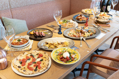薪窯ピザを主役に、アンティパストやパスタ、メインまで、本格イタリアンをカジュアルに楽しめるオールデイダイニング。