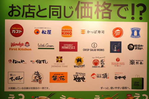 対象企業は、ガスト、松屋、バーガーキング、かっぱ寿司、成城石井、ピザハット、クリスプサラダワークス、や台ずし、ローソン、ウェンディーズ、With Green、小雀屋など。対象店舗は今後も拡大予定。