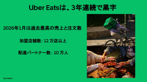 同社は日本国内において、2023年から2025年の間、3年連続で黒字を達成、2026年1月には過去最高売上を記録した。加盟店数は約12万店、配達パートナーは全国に10万人を有する。