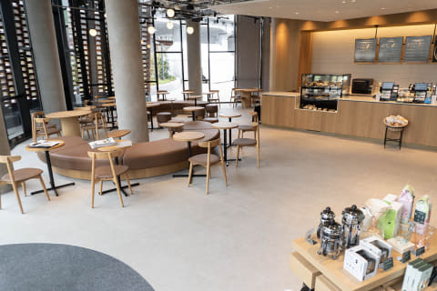 ラウンジは木や緑に囲まれ自然のぬくもりを感じさせる設えとし、ゆったりと寛げる家具を配置した。