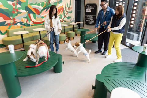 スターバックスは「ドッグフレンドリー」を特徴としており、店内に愛犬同伴エリアが設けられている。