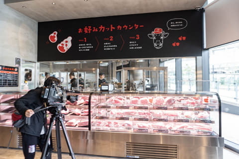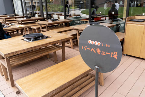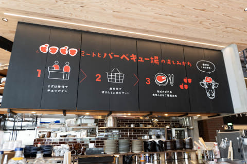 ピチピチミートファームは切りたて肉の直売所。直売所エリアのほか、「ピチピチミートで山本のハンバーグ」や、買った肉をその場で楽しめるセルフバーベキューエリアを併設している。
