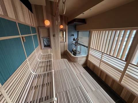 4階には都市型サウナ「サウナメッツァ大井町トラックス」がオープン。電車を模した「トラムサウナ」(男性向け)や草ロウリュを楽しめる女性サウナなどを用意する。また、サウナ室から山手線車両基地を眺められる。