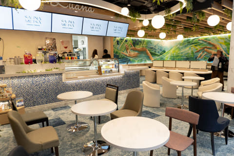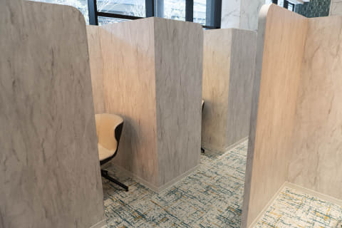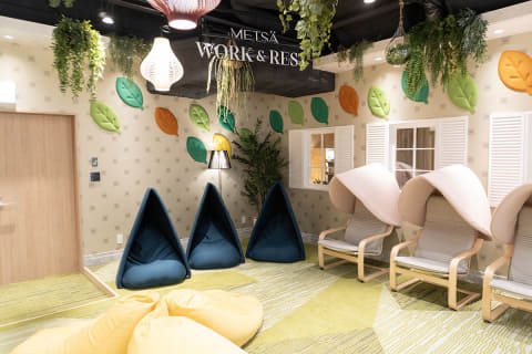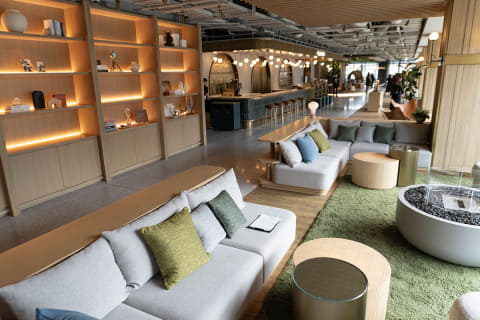スパ内には、ドリンクなどを提供するレストスペースのほか、コワーキングスペースなども設置している。