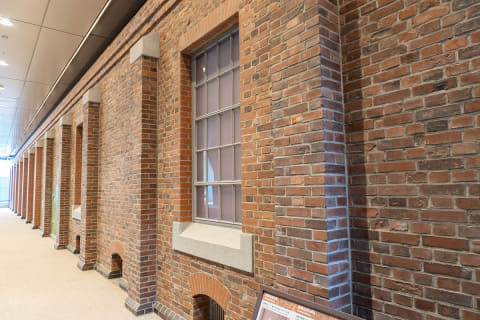 現在のJR東日本東京総合車両センターである「大井工場」は、1915年(大正4年)に新橋工場から移転した。大井工場開設にあわせて、鉄道車両庫としてレンガ車庫が建設された。現在はレンガ車庫は解体され残っていないが、保存されたレンガが1階の交通広場の壁に使用されている。