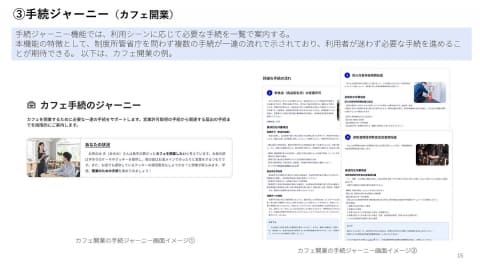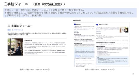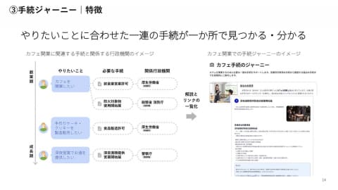 個人向けの「マイナポータル」のように、行政サービスのオンラインでの事業者における窓口を目指すもので、行政手続や補助金の申請、申請者と士業者や行政機関等の間でのやり取りなどの窓口を整理し、デジタルサービス上で完結させる。