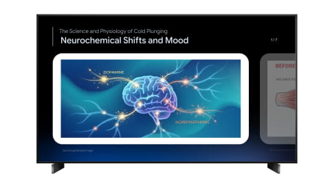 ディープダイブとして、興味のある事柄を深堀りできる機能を提供。健康や経済、テクノロジー、教育などのトピックについて、ナレーション付きのビジュアル解説が提供される。