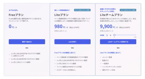 PLaMo翻訳の有料プランは1名ごとの料金設定になっていたが、組織で利用したいという要望を受け、新たに「Liteチームプラン」を設定。複数人での利用を一括請求したり管理したりできるようになった。