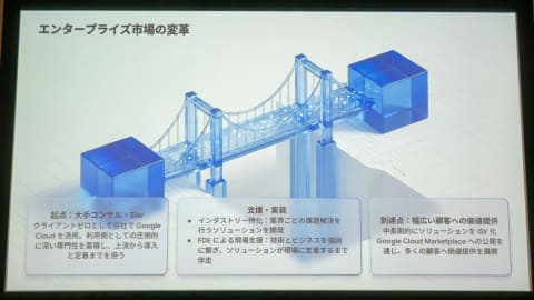 インフラ面では、AIエージェント時代に対応した柔軟な実行環境が必要になると指摘した。企業が抱えるセキュリティやデータ主権の課題に対応するため、Google Cloudとともにパブリッククラウドだけでなく、プライベート環境でのAIインフラも含めて一貫して支援していく方針を示した。