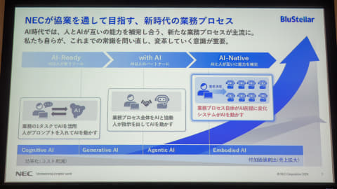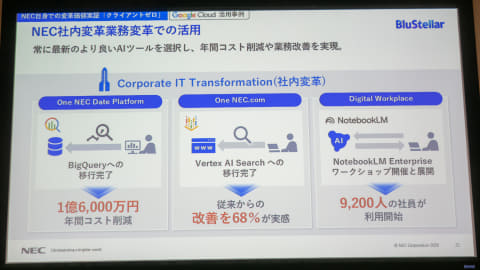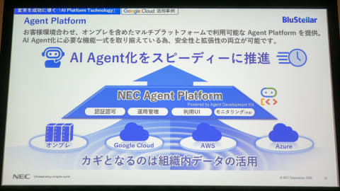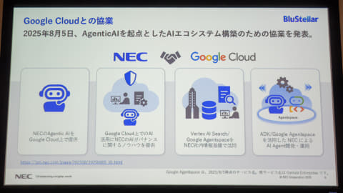 山田氏は、NECにおけるAIの取り組みとGoogle Cloudとの協業成果を説明。NECは1960年代からAI開発に取り組んでおり、現在はAIエージェントに注力している。こうした取り組みを通じて、業務全体がAIを前提に機能するオープンなAIエコシステムの構築を目指しているという。